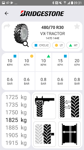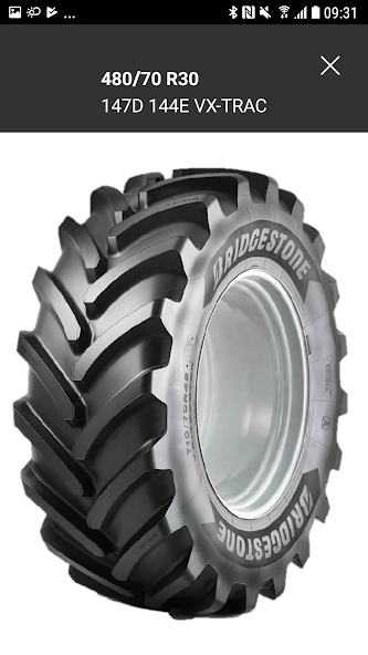 Bridgestone 농업 타이어를 사용할 때 최적의 안전성 및 효율성을 얻기 위해 타이어 압력 계산에 사용되는 유틸리티 응용 프로그램.