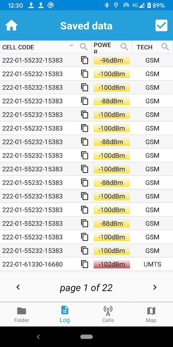 GPS 위치 및 사용된 BTS 셀을 기록합니다.
