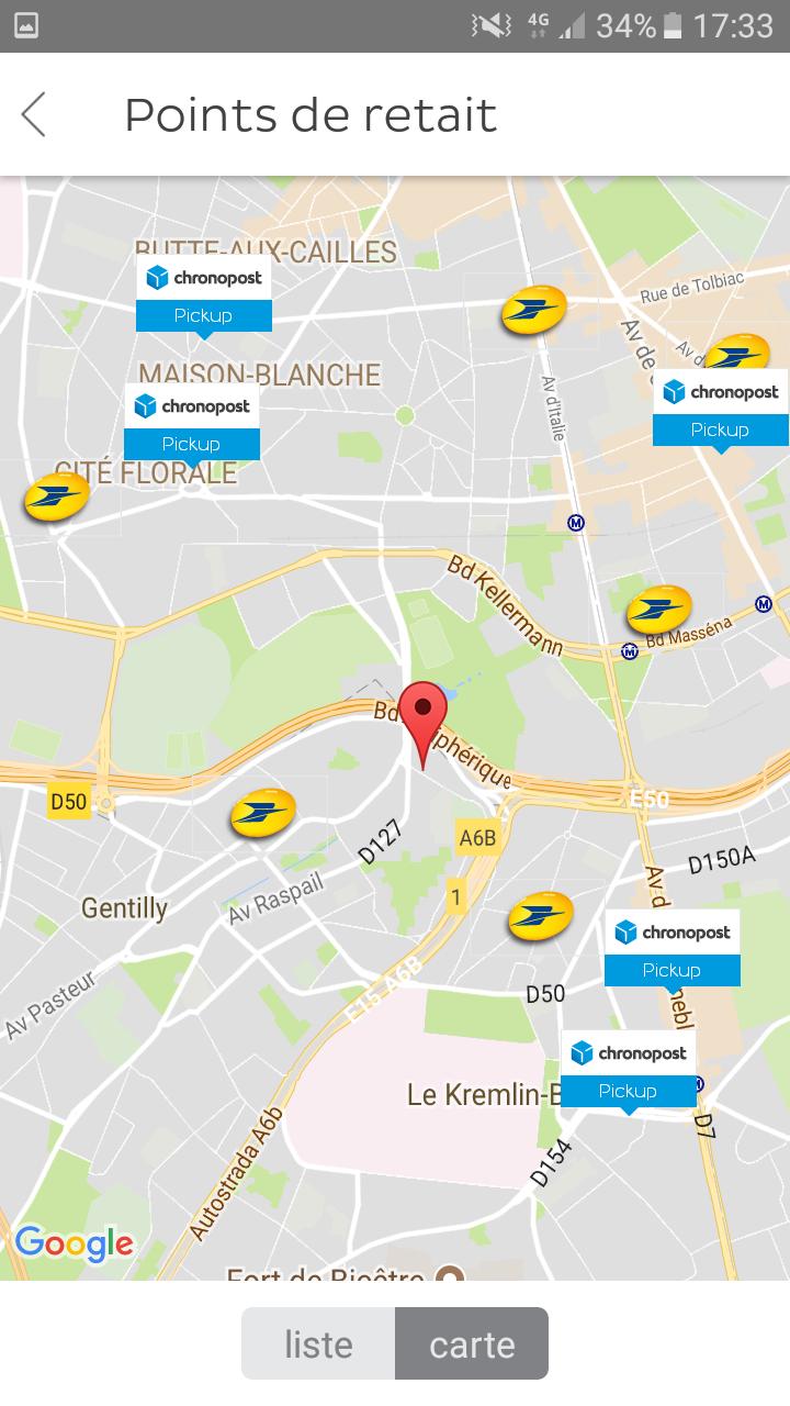 - 가장 가까운 인출 지점 (우체국, Chronopost 대행사 및 픽업 릴레이)을 찾으십시오.