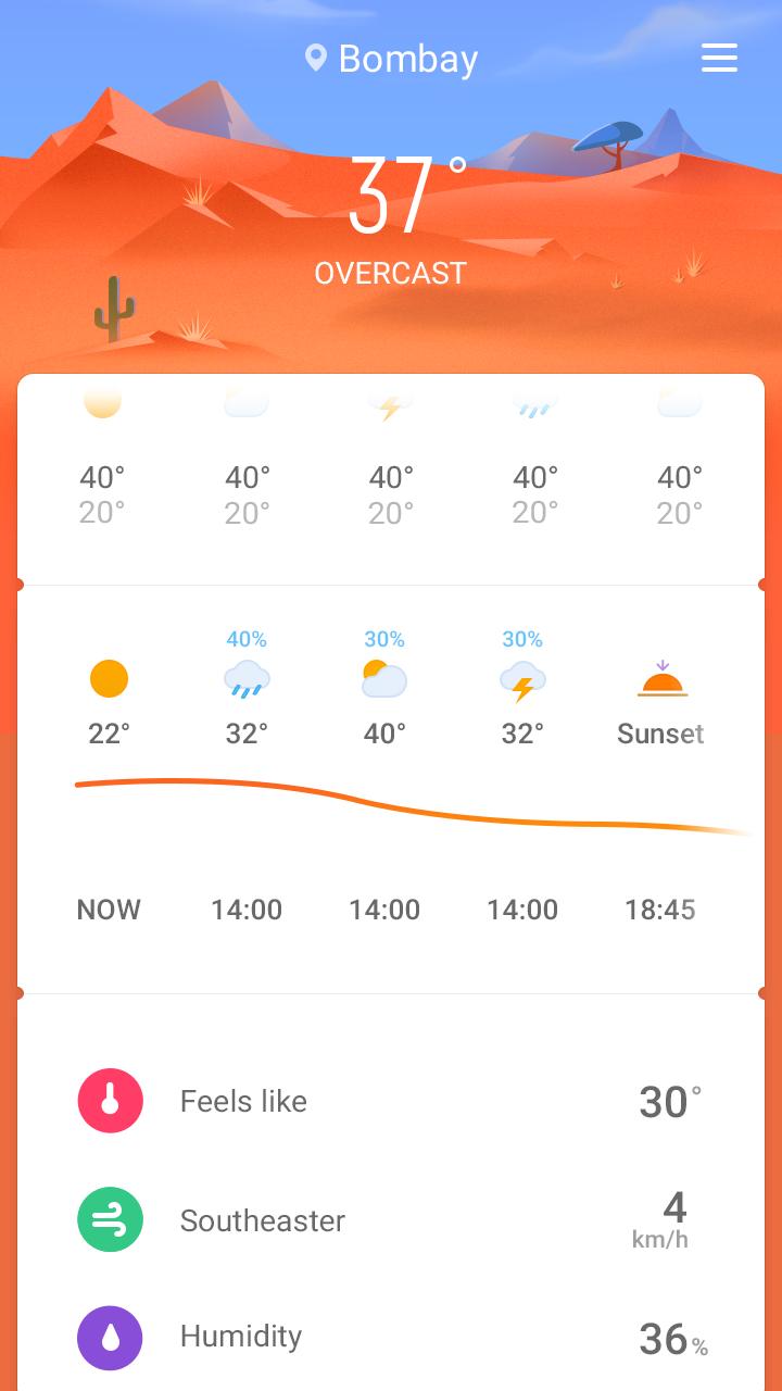 펠트 온도, 풍속, 습도 및 UI 지수 알림;