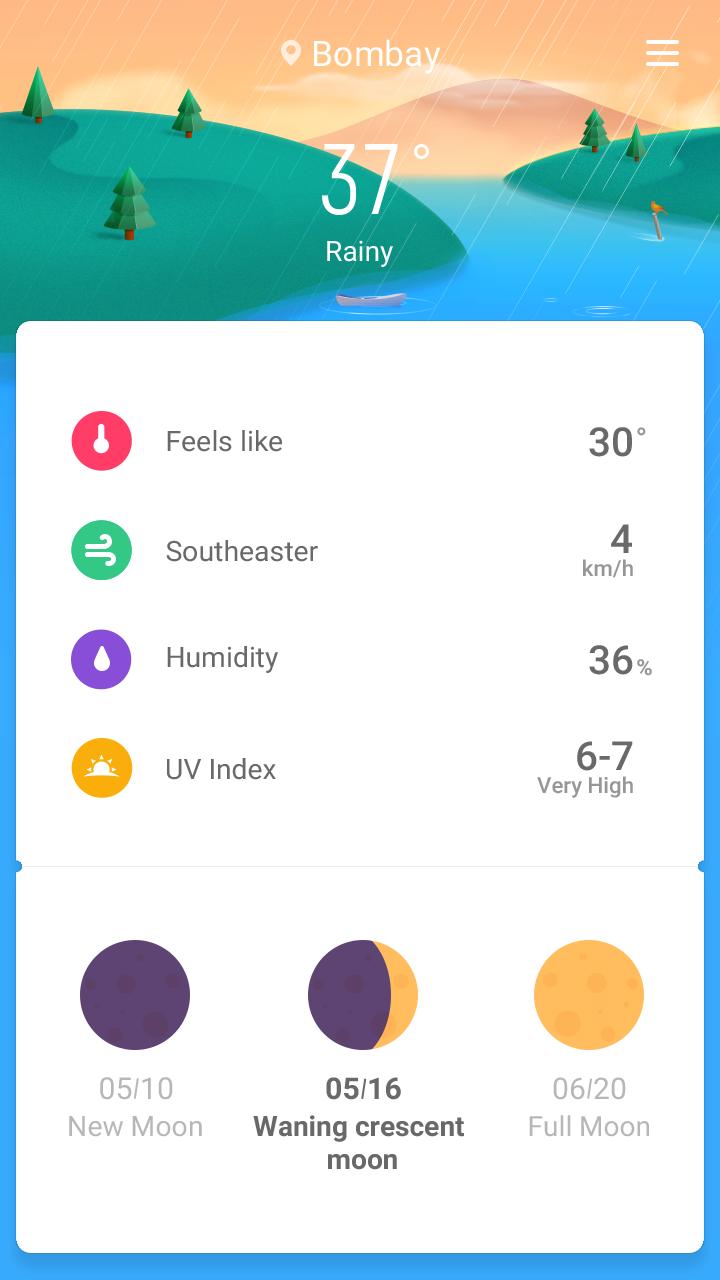 홈 화면의 풍경 카드는 다양한 날씨의 매력을 퍼뜨립니다.