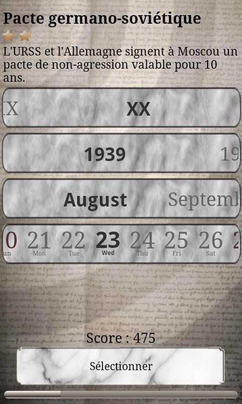 Historia France 역사상 일반 문화를 테스트하기위한 완벽한 응용 프로그램입니다! 역사적 행사가 주어지면 그 날짜에 해당하는 날짜를 찾을 수 있습니까?