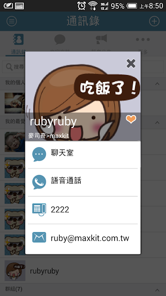 Maxkit KoKoLa 기업을위한 IM (Instant Messaging) 시스템입니다. 로그인 KoKoLa 후 모든 직원은 기업 목록을 자동으로 검색 할 수 있습니다. 메시지 내용은 엔터프라이즈 정보 보안 정책에 따라 보호됩니다. KoKoLa 또한 전통적인 전화기 PBX (Private Branch Exchange) 스위치와의 전화 통합을 지원합니다.