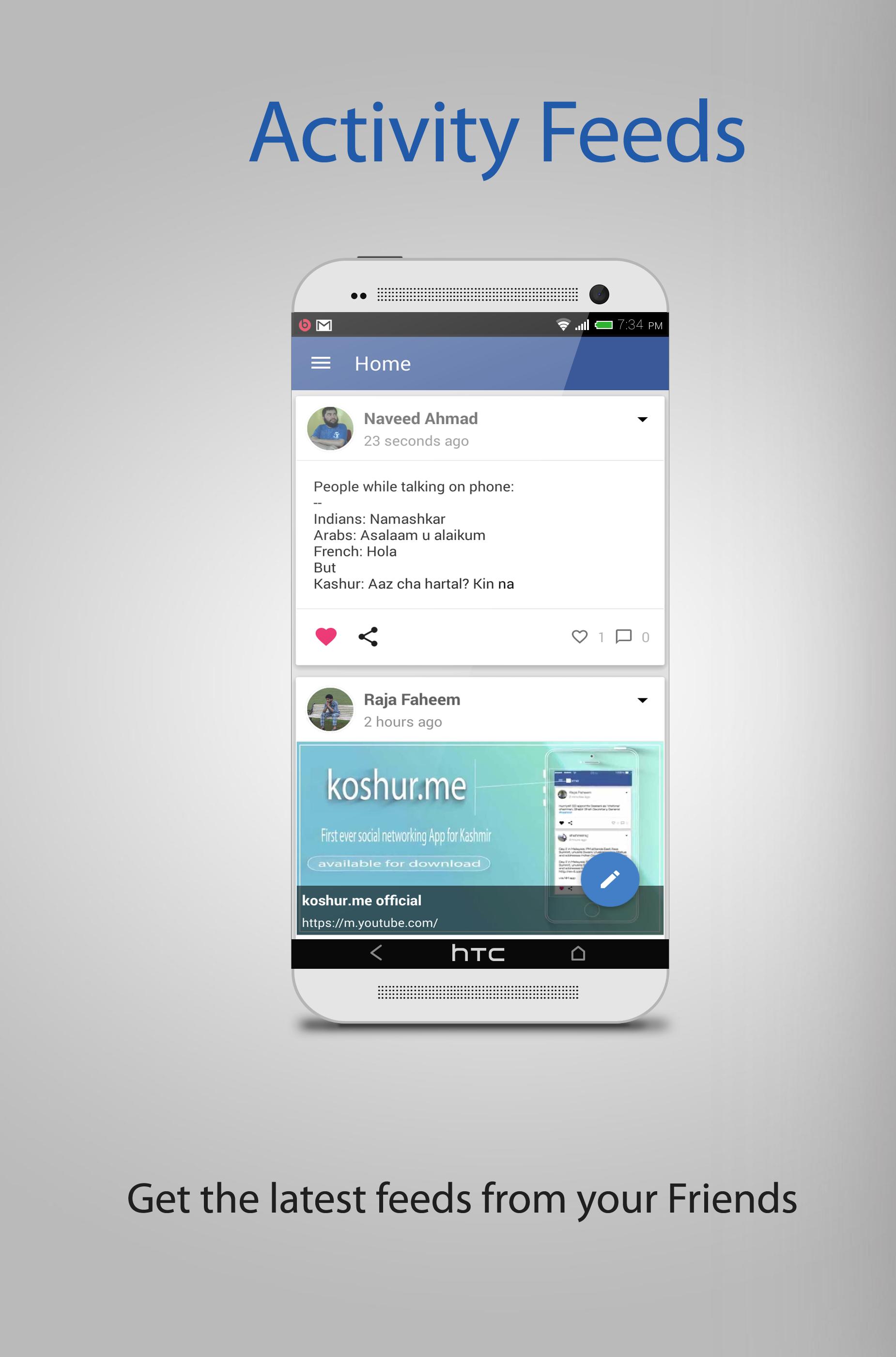 Koshur.Me 최초의 Kashmiri 소셜 네트워킹 앱. 이것은 첫 번째 릴리스이며 버그가 발생하기 쉬우 며 의견과 평가를 자유롭게 느낄 수 있습니다.