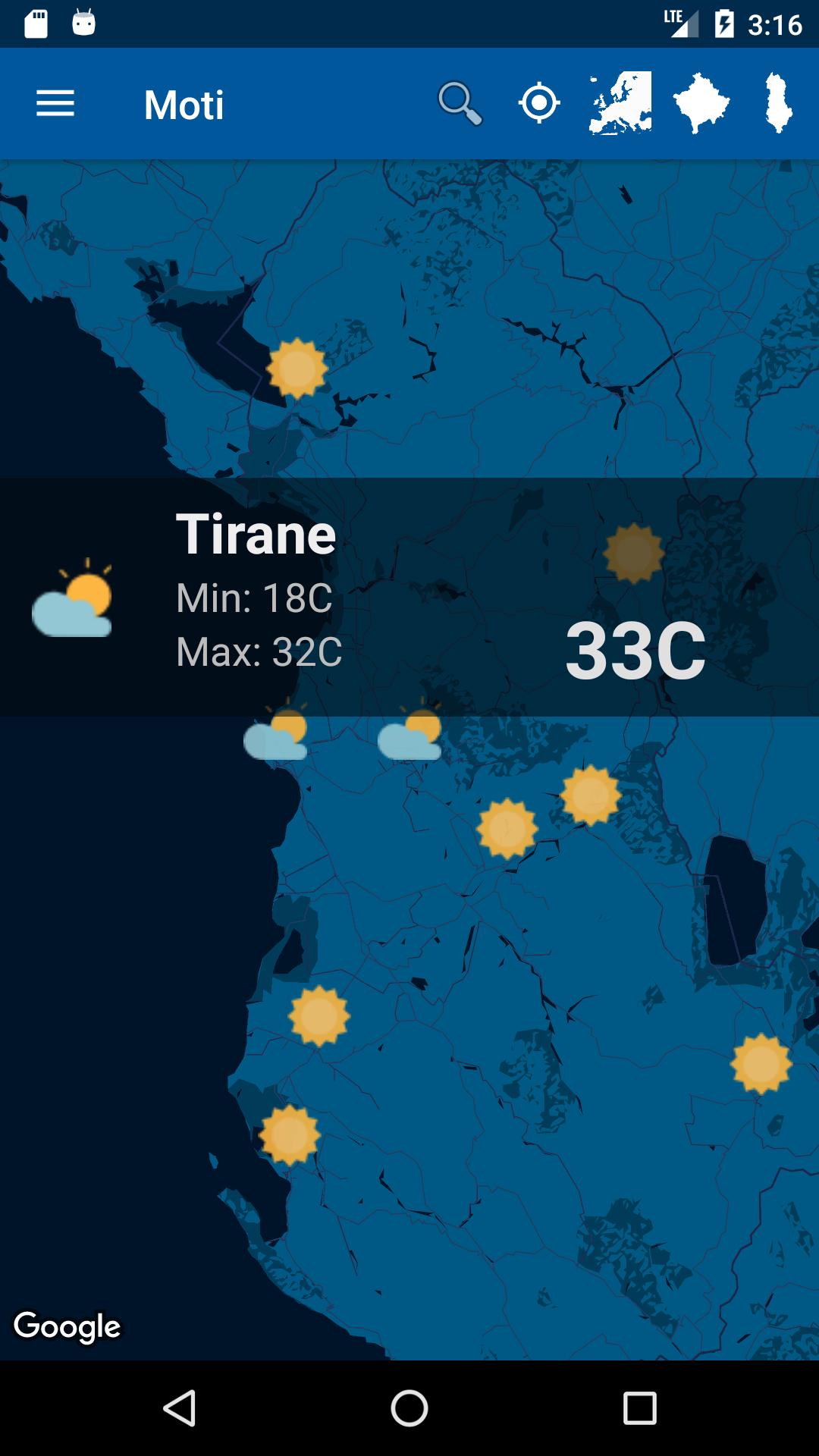 알바니아/세계지도에 대한 실시간 Moti 예보.