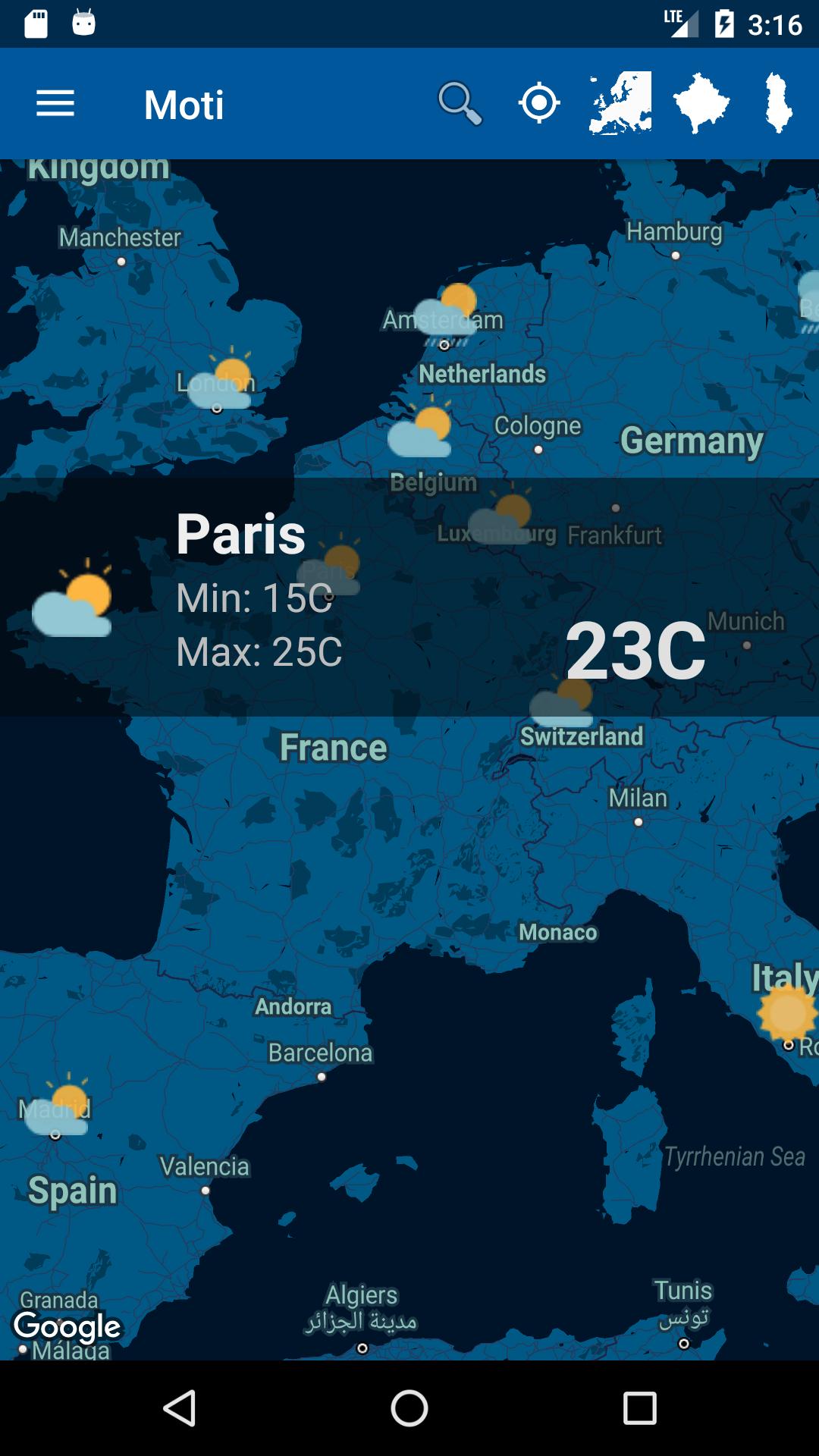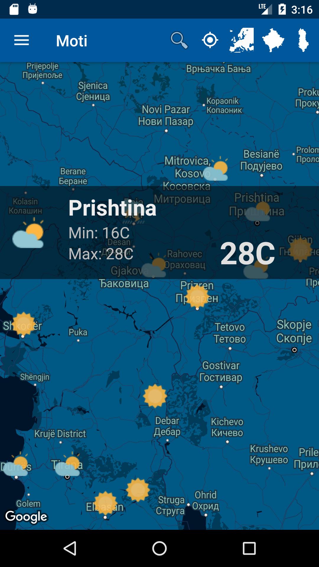 Long Press ( Moti 날씨가있는 곳)에 의해지도의 각 지점에 대한 결과