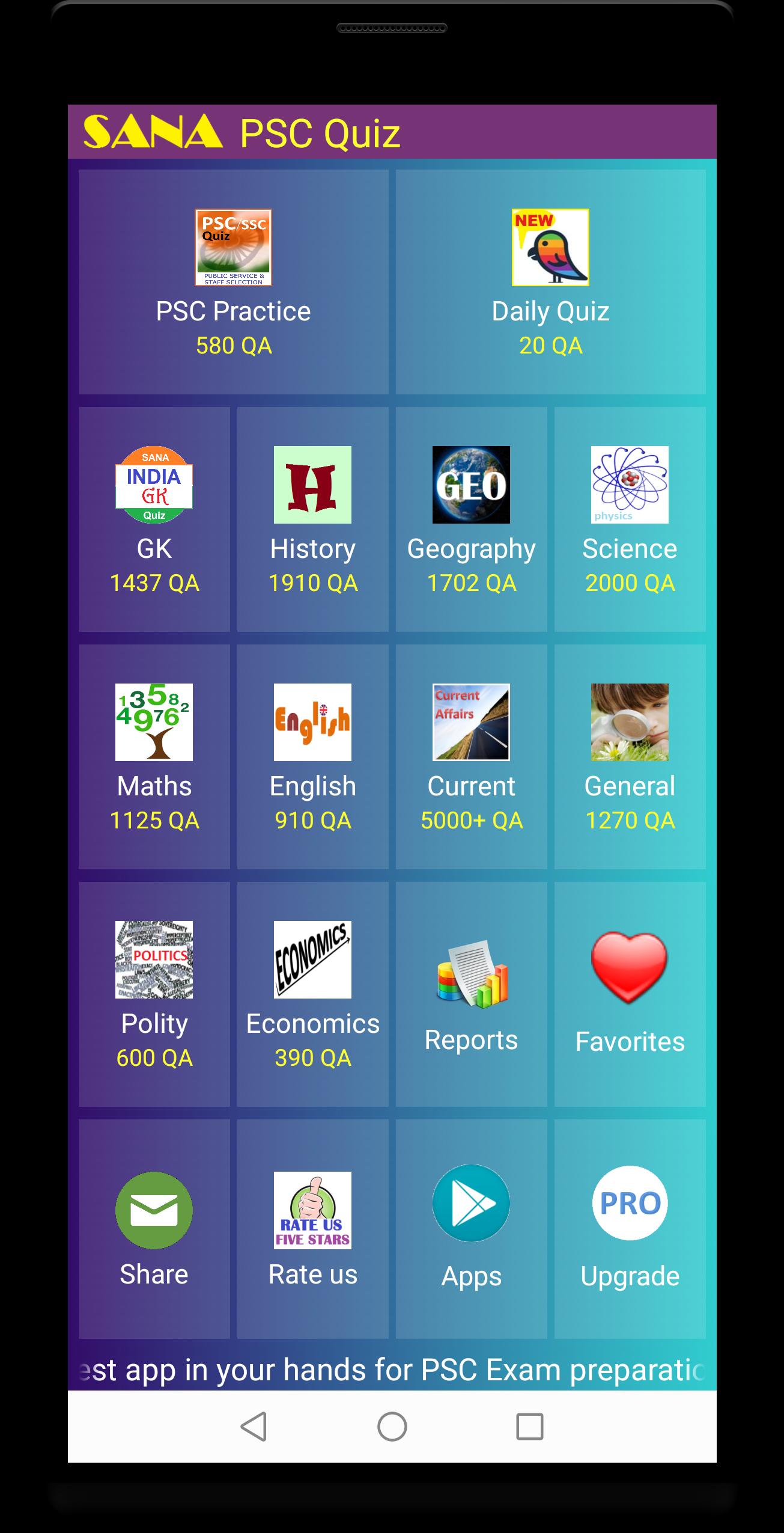 퀴즈 앱은 과학 과목뿐만 아니라 인도에 대한 지식을 새롭게합니다. 이 앱은 자체 학습 및 자기 테스트를위한 주 민사 서비스 시험을 준비하는 데 도움이됩니다.