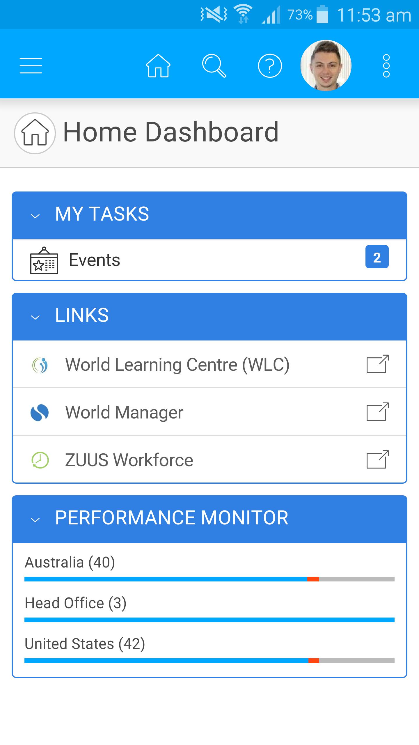 World Manager®에 의해 구동되는 The BUN 교육, 커뮤니케이션, 운영, 인사 도구 등에 쉽게 이동할 수 있습니다.