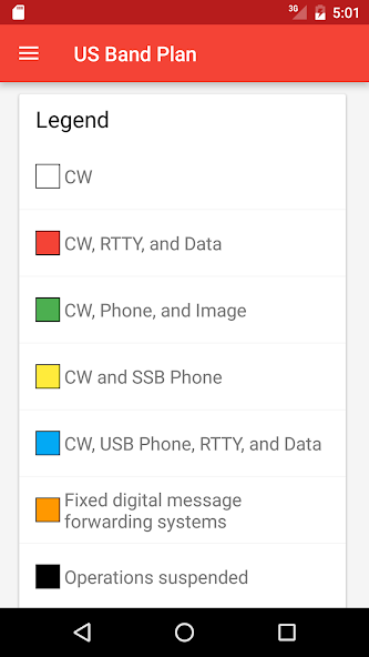유일한 목적 인 깨끗한 기본 앱은 아마추어 라디오 운영자에게 미국 햄 라디오 밴드 계획에 대한 간단하고 사용하기 쉬운 필드 안내서를 제공하는 것입니다.