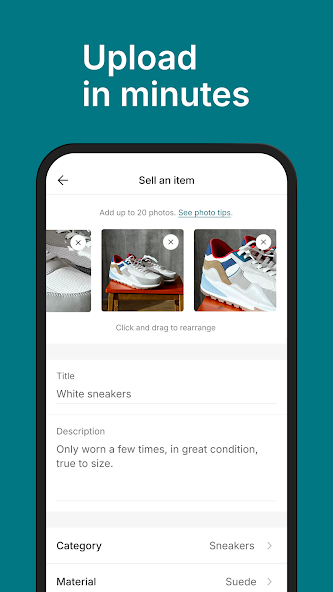 항목 사진을 찍고 설명하고 가격을 설정하십시오. 즐겨 찾기 나 구매에 대한 알림과 한 곳에서 필요한 모든 정보가 나타납니다.