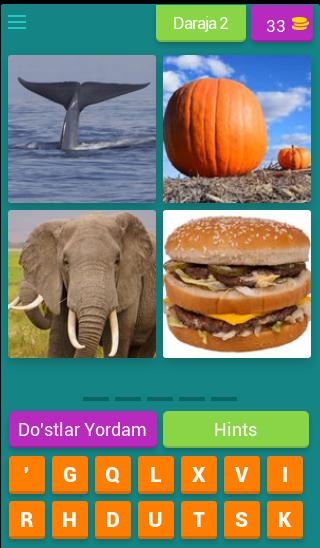 각 레벨마다 다른 레벨이 다른 레벨을 갖는 경우 4 장의 사진이 다른 레벨을 가지고있을 때 4 장의 공통된 단어를 찾아야합니다.
