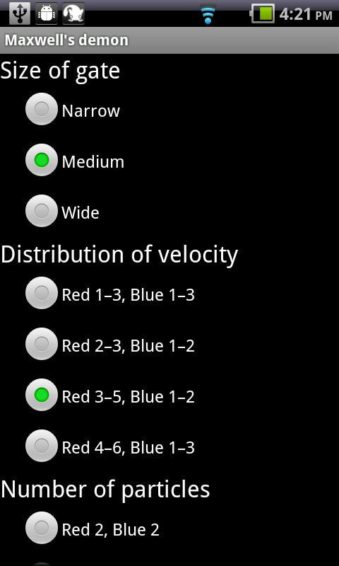 당신의 목표는 모든 빨간 입자를 방의 한쪽으로, 모든 파란색 입자를 다른쪽으로 옮기는 것입니다.