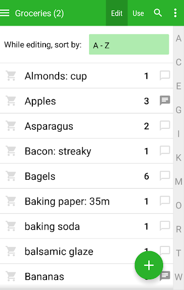Construindo uma lista de compras durante a semana? Encontre os itens rapidamente (você pode classificar 4 maneiras diferentes ou pesquisar) e toque para marcá -los conforme necessário. Altere as quantidades usando um pop-up útil. Adicione notas para mais detalhes. Atribua maçãs e bananas ao corredor de frutas e vegetais e leite e queijo ao corredor de laticínios. Navegue a lista completa para se lembrar de outras coisas que você precisa.
