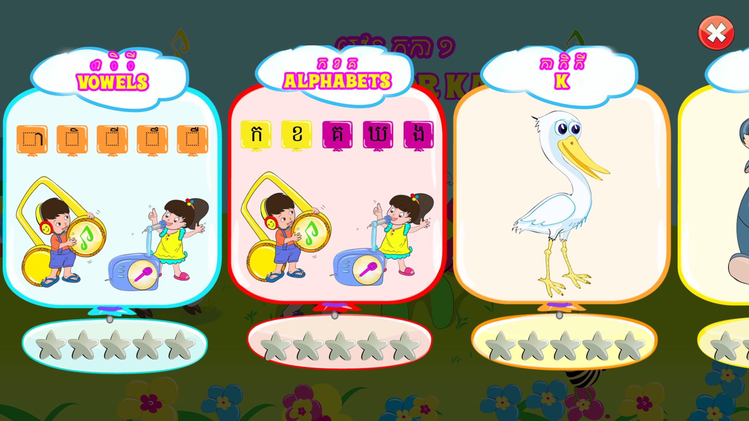 Aprenda o aplicativo Kor Ka for Kids ensinará a você sobre alfabetos, consoantes e vogais Khmer com obras de arte legais, som agradável, música e música. O aplicativo inclui uma ajuda da fonética inglesa que o ajudará a pronunciar cada palavra facilmente. E no final de cada alfabeto, há um teste interativo para medir quanto você obtém melhorias depois de tocar e lê -lo.