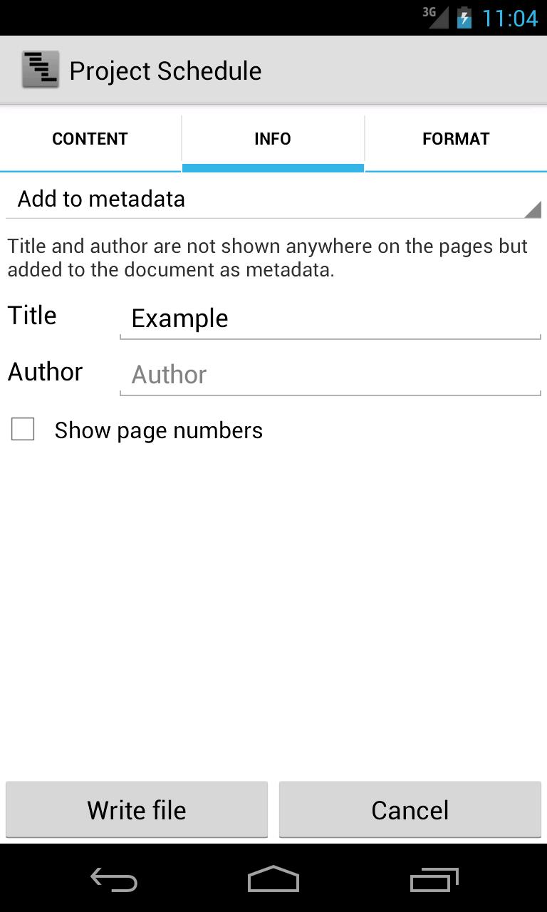 O addon permite exportar diagramas de gantt, listas de tarefas, dados de recursos e estruturas de quebra de trabalho para documentos em PDF.
