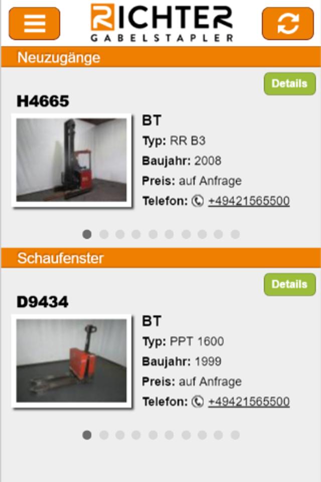 para os líderes de mercado nesse setor. Nosso aplicativo também informa sobre o inventário diário de cerca de 600 dispositivos independentes do fabricante de todas as capacidades, anexos e peças de reposição.