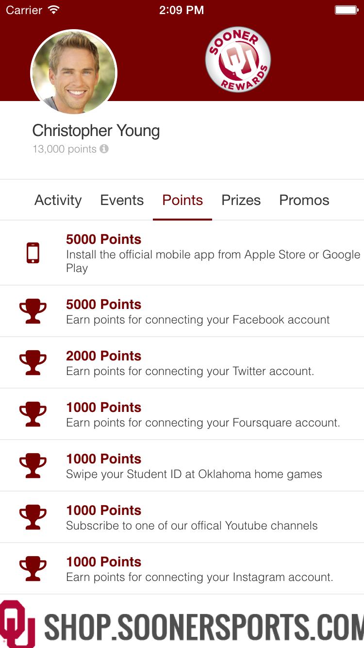 - Conecte -se a várias contas de mídia social para ganhar pontos.