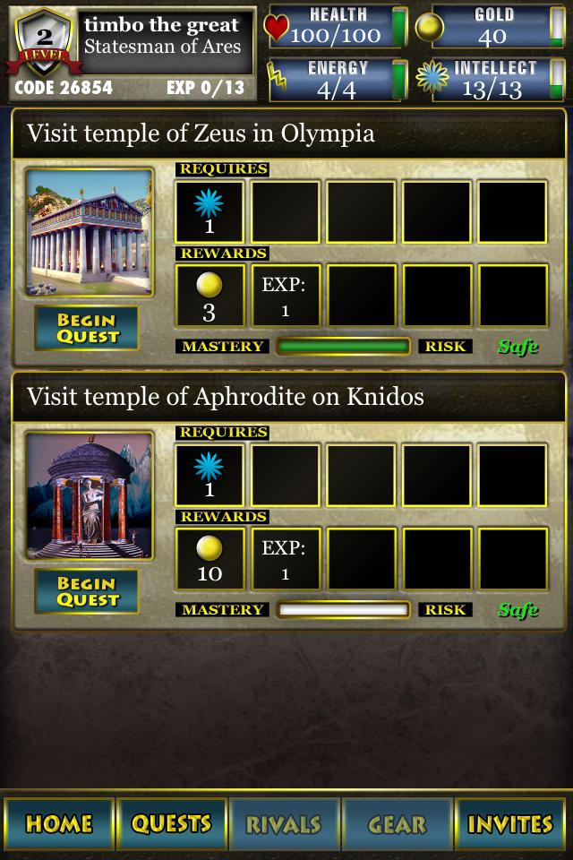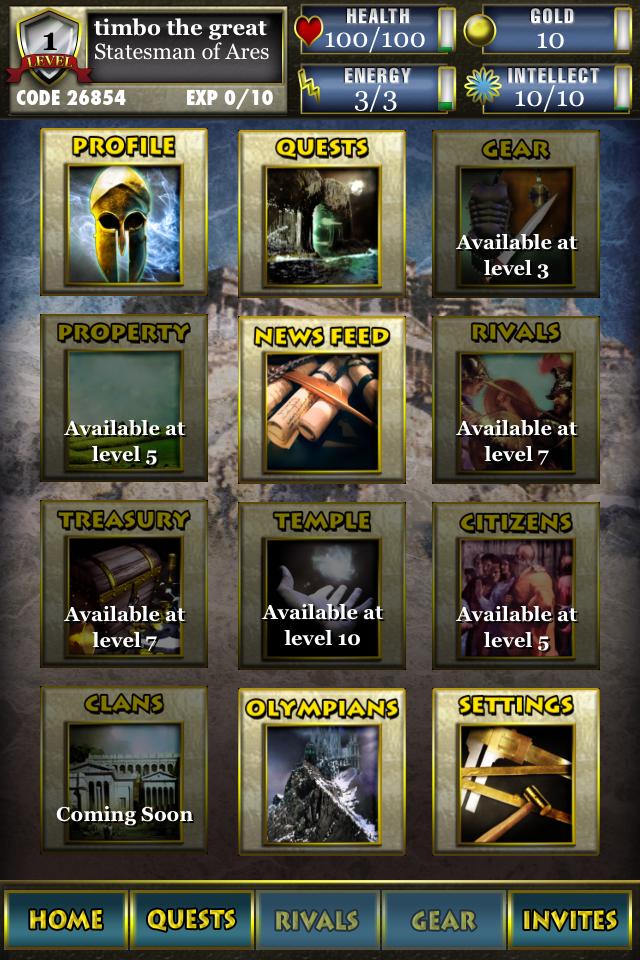 Você deve ver por si mesmo a beleza e a graça deste mundo para acreditar !! Os jogadores sentirão como se tivessem sido transportados para o reino mítico de Homer há muito tempo. Então, venha, meus doces amigos, construa sua própria Atenas ou Roma, cresça sua cidade-estado ... Reúna suas forças ... Preste homenagem e busca o favor dos deuses ... como se estivesse na Era de Ouro, então será novamente. Viaje comigo agora ... e crie sua própria utopia !!