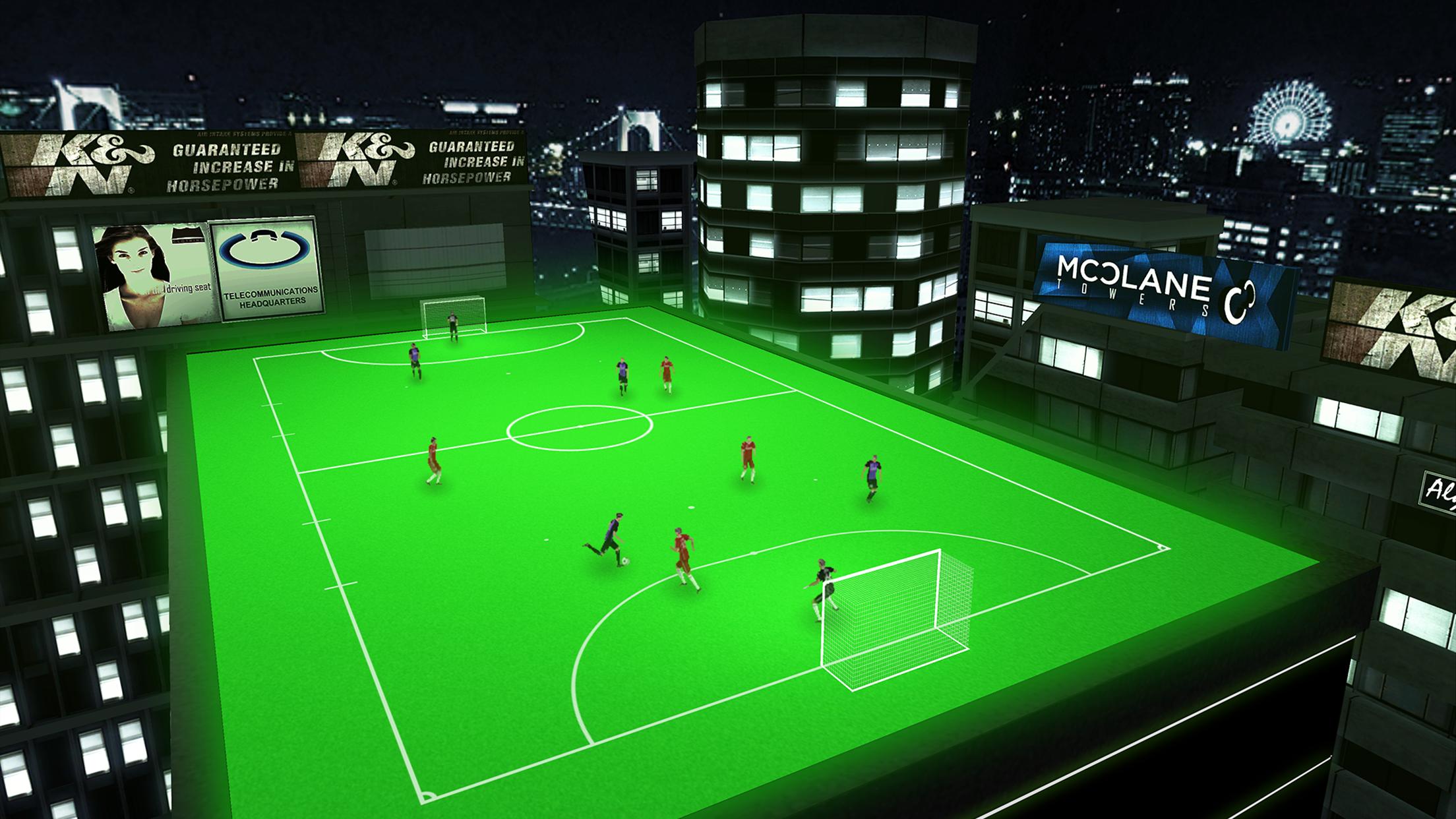 Jogo de futsal 3D. A partida será realizada em vários locais.