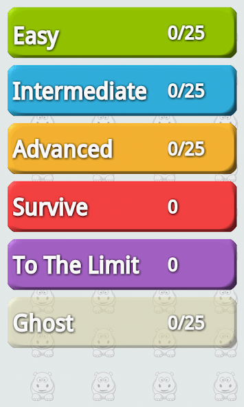 Hungry Hippo tem vários modos de jogo, cada um com sua dificuldade inicial.
