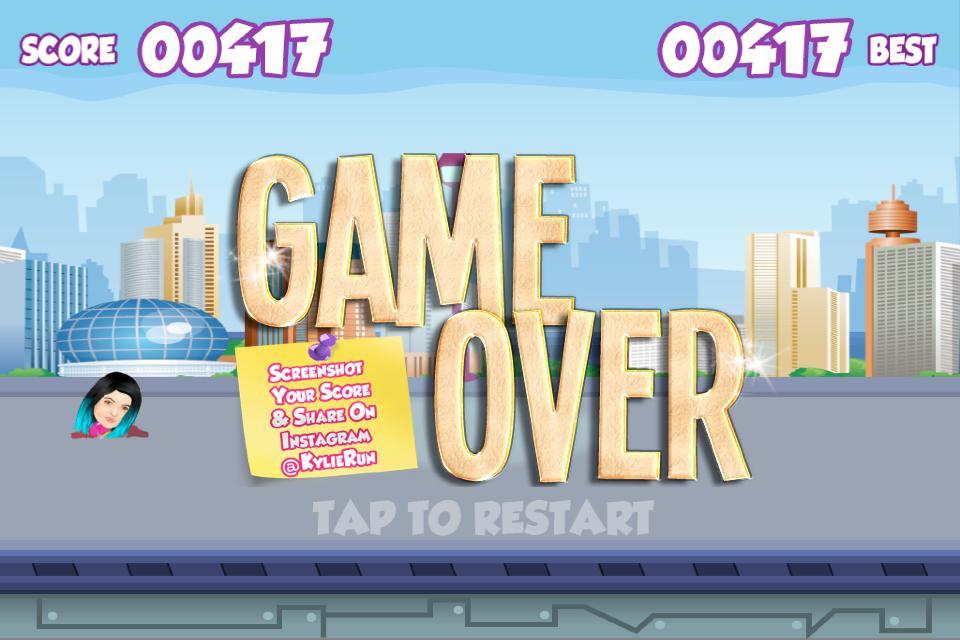Compartilhe sua pontuação alta no Instagram com uma captura de tela #kylierun
