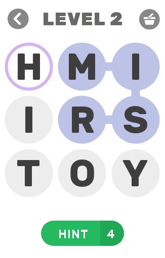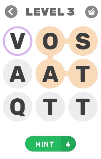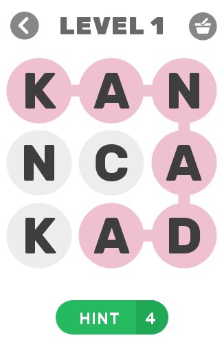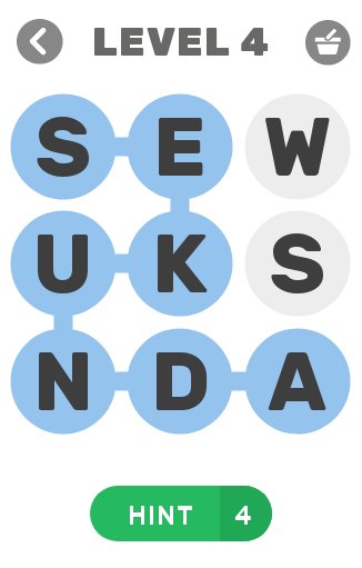 - Para passar de nível você precisa encontrar palavras onde cada letra é usada.
