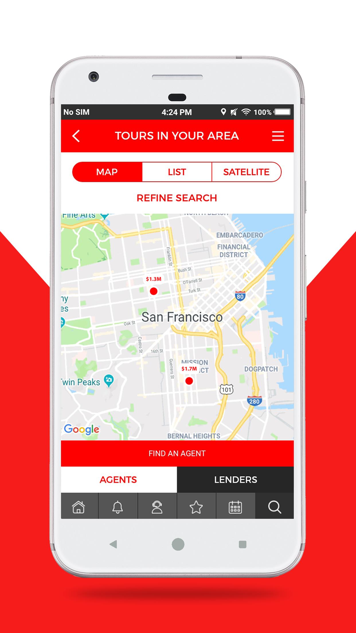 • Покупатели жилья могут просматривать агентов по недвижимости в своем текущем месте непосредственно в приложении.