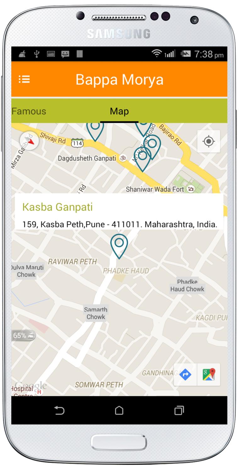 Люди в городе Пуна могут пропустить, наслаждаясь некоторыми из знаменитых идолов, поэтому приложение в игровом магазине поможет им ориентироваться и предоставить информацию о идолах Ganesh в городе. Приложение « Bappa Morya » поможет людям, не только для людей в Пуне, но и для посторонних, которые посещают город, чтобы насладиться праздником фестиваля Ганеша.