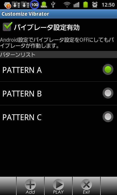 Первоначально вибрационные шаблоны могут быть выбраны три шаблона, вы можете добавить свои собственные исходные шаблоны.