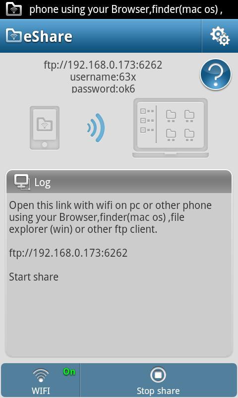 eShare , легко поделиться своими файлами на другие устройства с Wi -Fi.