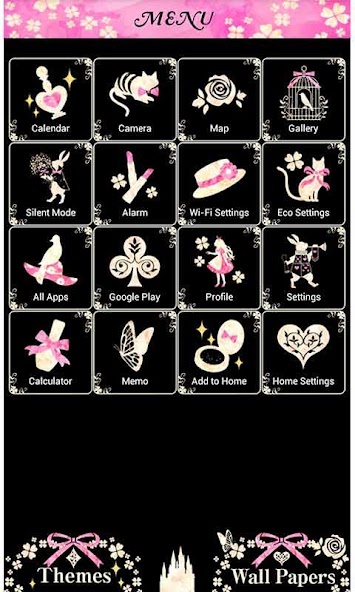 Эта милая тема включает в себя Алису, потерянную в земле, наполненной девчачьими аксессуарами!