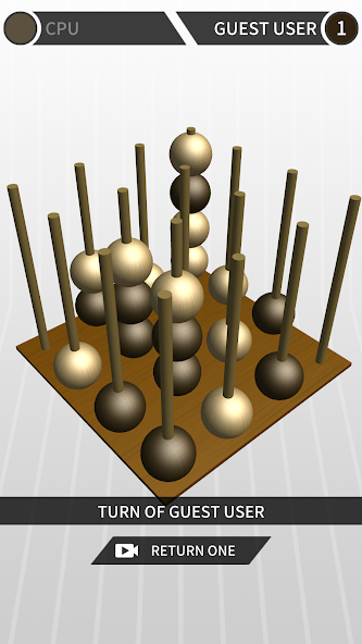 Поочередно положите мяч в палки. Если вы можете организовать шарики вашего цвета горизонтально и вертикально по диагонали, когда вы выигрываете.