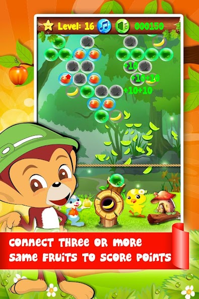 Сделайте комбинации 3 или более фруктов, чтобы они лопались. Взорвать все фрукты, чтобы выровнять.