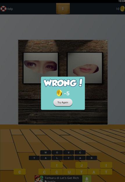 Применение Tebak Wajah - это игра для тестирования памяти, в виде кусочка глаз и губ некоторых известных людей в стране.