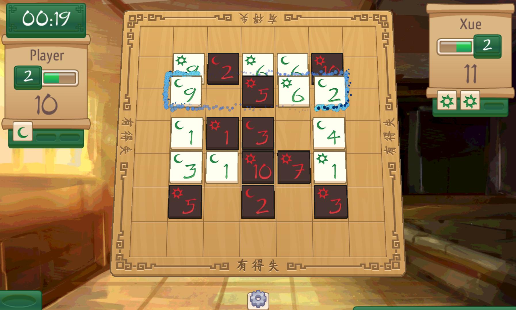 Возьмите плитку, чтобы максимизировать свой счет и перехитрить своего противника. Каждое движение, которое вы делаете, диктует, какую строку (или столбец) плиток может выбрать ваш противник, - попробуйте поймать их, но остерегайтесь того, что они делают то же самое с вами! Создайте комбинацию, повышающие счет, и используйте таинственные магические предметы, чтобы перевернуть прилив битвы в вашу пользу.
