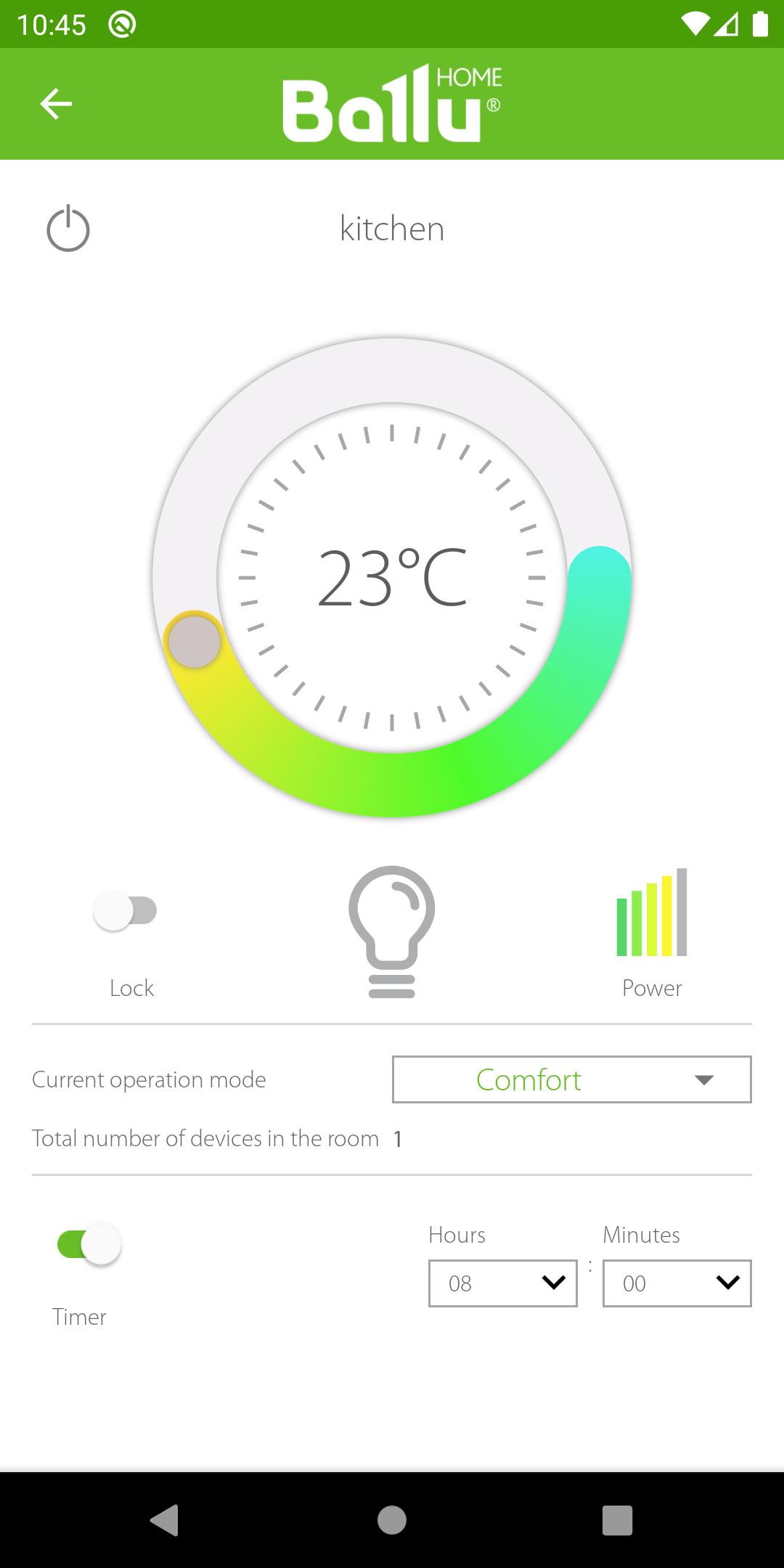 ด้วยความช่วยเหลือของแอปพลิเคชันมันเป็นเรื่องง่ายและง่ายต่อการควบคุมสภาพภูมิอากาศในบ้านแม้ว่าคุณจะอยู่ไกล คุณสามารถตั้งค่าโหมดอุณหภูมิของการทำงานของอุปกรณ์เปิด/ปิดควบคุมงานปัจจุบันและดูข้อมูลเกี่ยวกับอุณหภูมิในห้อง