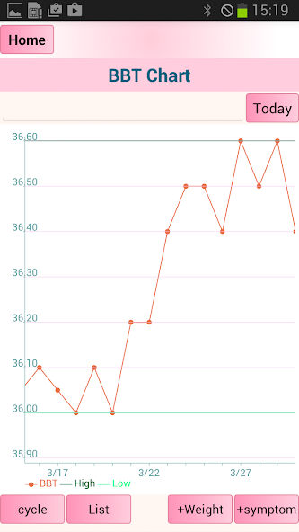 แอพอุณหภูมิพื้นฐานของร่างกายนี้เป็นแอพที่ง่ายและใช้งานง่ายที่ช่วยให้ผู้หญิงสามารถติดตามวัฏจักรรายเดือนและบันทึกอุณหภูมิร่างกายของพวกเขา
