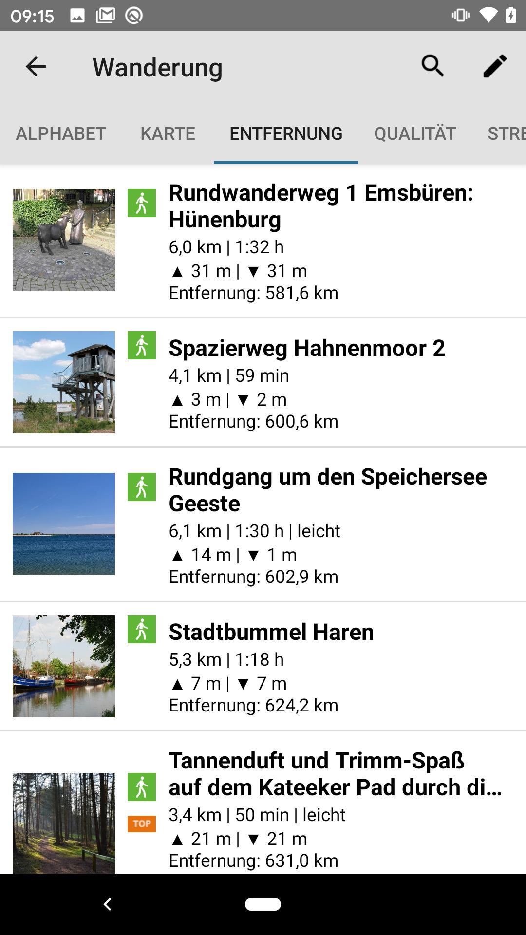 -ทัวร์ทั้งหมดสามารถจัดเรียงตามตัวอักษรความยากและระยะทางไปยังตำแหน่ง