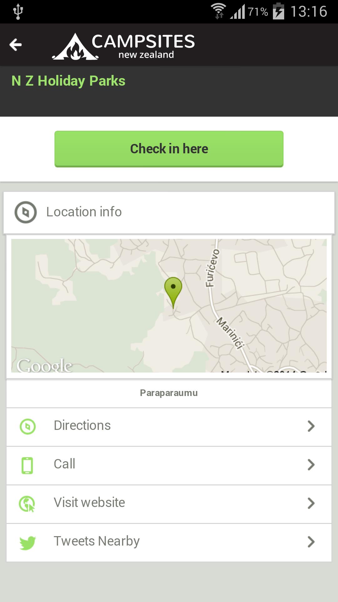 New Zealand Campsites และสวนวันหยุด แต่ละไซต์มีข้อมูลมากมายรวมถึงที่อยู่หมายเลขโทรศัพท์เว็บไซต์และแม้แต่คุณสมบัติส่วนบุคคลของพวกเขาเช่นห้องน้ำฝักบัวกฎสัตว์เลี้ยง ฯลฯ