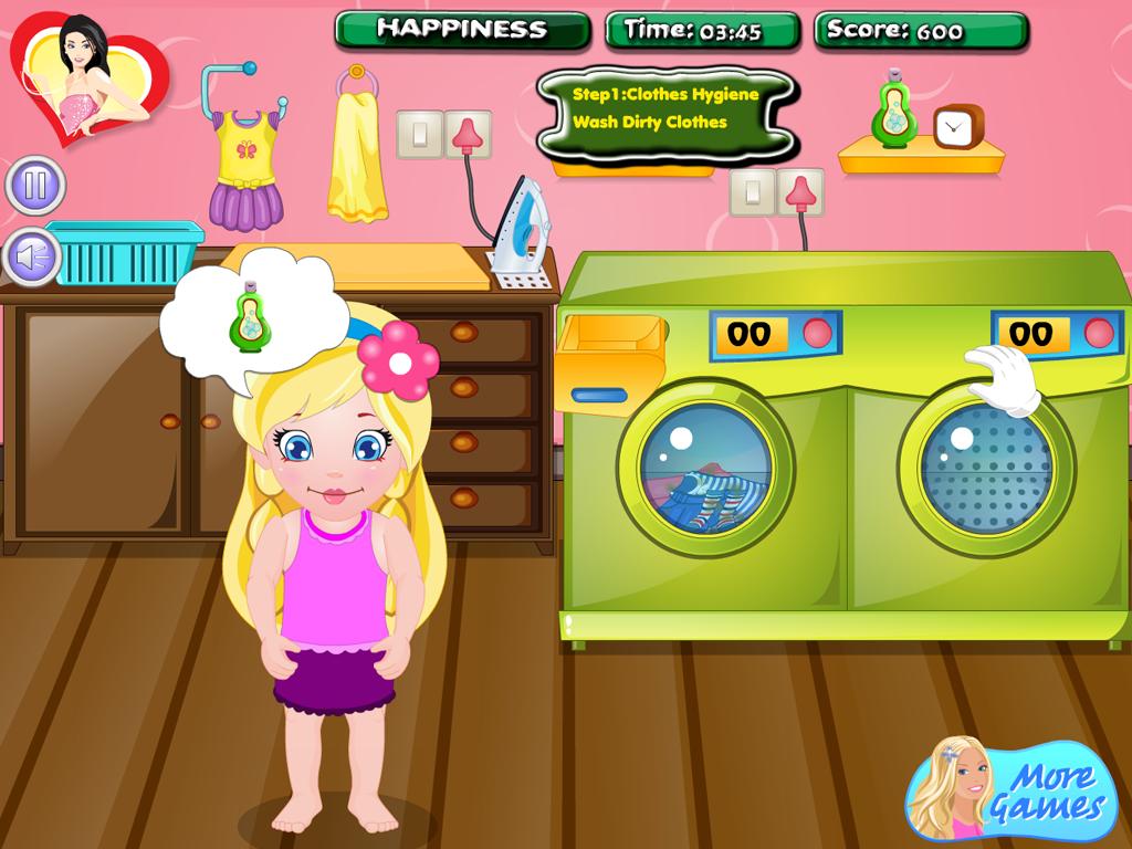 เล่นเกมที่ห่วงใยเด็กใหม่นี้และช่วยให้ทารกโซเฟียเรียนรู้บทเรียนสำคัญในวันนี้โดยแสดงให้เธอเห็นวิธีการล้างเสื้อผ้าสกปรกของเธอและวิธีการรีดพวกเขาแล้วอย่าลืมที่จะช่วยเธอด้วยช่วงสุขอนามัยส่วนตัวของเธอเช่นกัน: ล้างหน้าและแปรงฟันของเธอตัดเล็บและหวีผมของเธอ