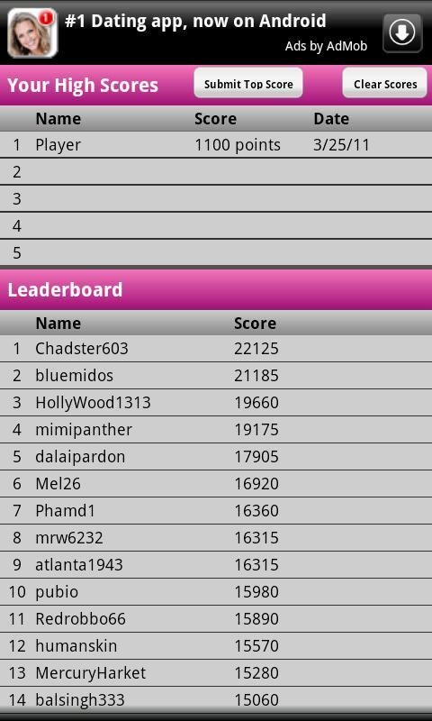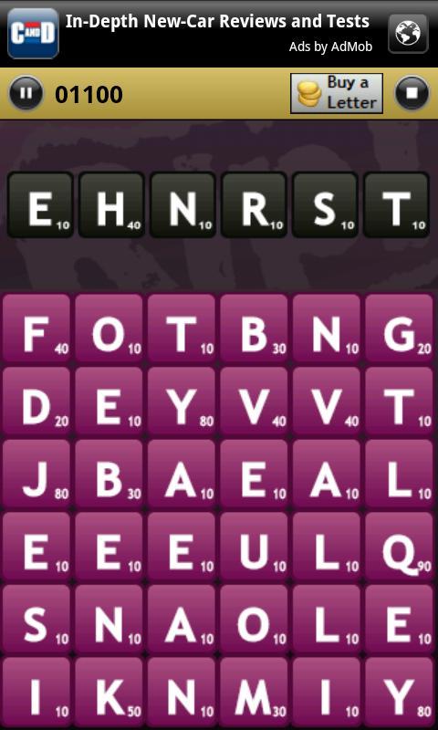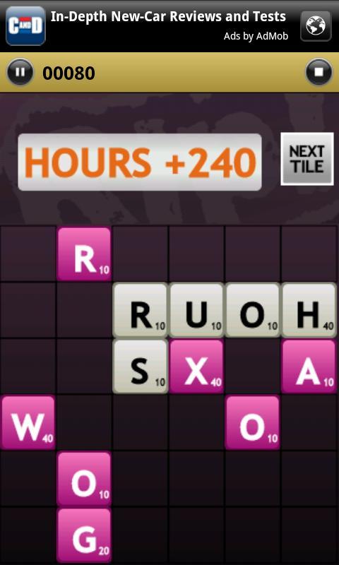 ผู้เล่นเลื่อน (RIP!) กระเบื้องรอบกระดานเพื่อสร้างคำพูดในเกมที่เหมือน Scrabble นี้ เมื่อคำที่ถูกต้องถูกสร้างขึ้นกระเบื้องจะหายไป กระเบื้องจดหมายแบบสุ่มปรากฏขึ้นอย่างต่อเนื่องในขณะที่คุณแข่งเพื่อป้องกันไม่ให้บอร์ดเกมเติมเต็ม เมื่อบอร์ดเติมเต็มเกมจะเปลี่ยนไปและคุณจะต้องล้างบอร์ดของกระเบื้องที่เหลือทั้งหมด คุณจะมีกระเบื้องเพิ่มเติมเพื่อช่วยคุณและสามารถซื้อจดหมายพร้อมคะแนนของคุณได้ ล้างบอร์ดและคุณจะได้รับคะแนนเพิ่มอีก 1,000 คะแนน สนุกแค่ไหน? ดูว่าคุณซ้อนกันกับการแข่งขันในคณะกรรมการผู้นำได้อย่างไร