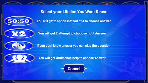 คุณจะได้รับ 5 lifelines ที่แตกต่างกันสำหรับแต่ละเกมและพวกเขาคือ: