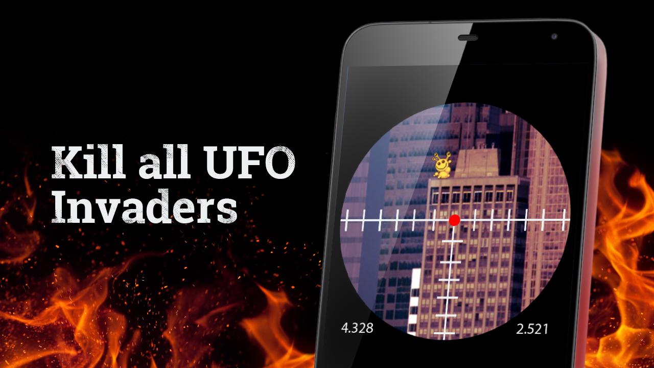 คุณคือมือปืนโทรศัพท์ของคุณคือขอบเขตของมือปืนมนุษย์ต่างดาวเป็นเป้าหมายแตะบนหน้าจอและคุณจะดึงไกปืนของคุณ กำหนดขอบเขตบนเป้าหมายดึงทริกเกอร์และทำลายศัตรู! ยูเอฟโอจะเสียใจกับคุณ! แบ่งปันภาพฆ่าของคุณในเครือข่ายสังคมออนไลน์! ท้าทายเพื่อนของคุณ! ทำให้ศัตรูมนุษย์ต่างดาวละทิ้งเมือง!
