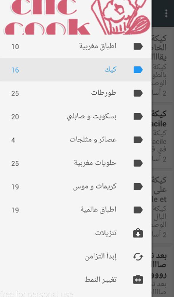 - 通过社交网站(例如Facebook和alwatsab)共享食谱的能力