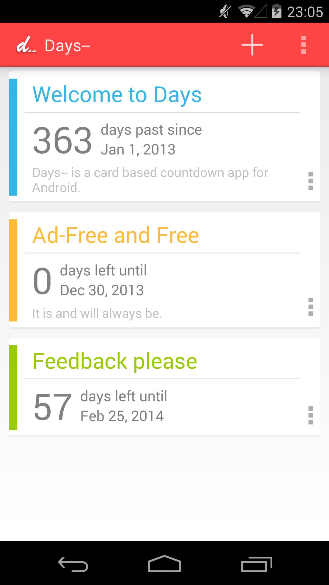 Days--提供所有必要的功能,以提醒您您的重要日期,并在您想保持井井有条的情况下为您提供选择。由于此应用程序是基于开源库构建的,因此它绝对是免费的,没有广告。