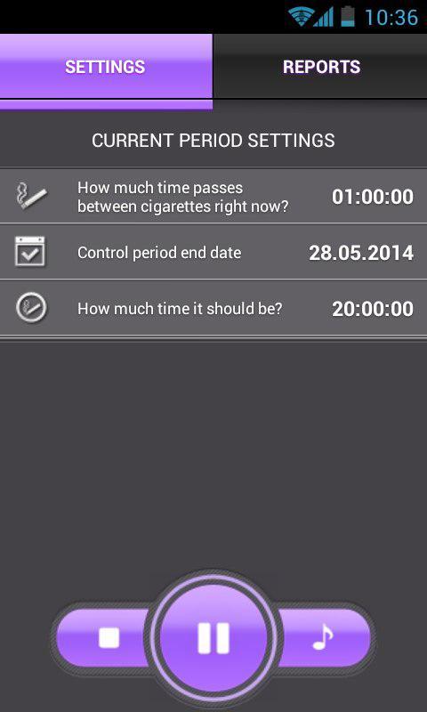 我们的申请将为您制定个人时间表,并在每次抽烟时都会向您发出信号。只需开始吸烟«根据闹钟»。您甚至都不会注意到抽烟的数量将如何减少,烟雾休息之间的时间将增加。在某个时候,似乎您每天只抽一次,而这只香烟不再吸引您。您可以完全戒烟,也可以偶尔吸烟。