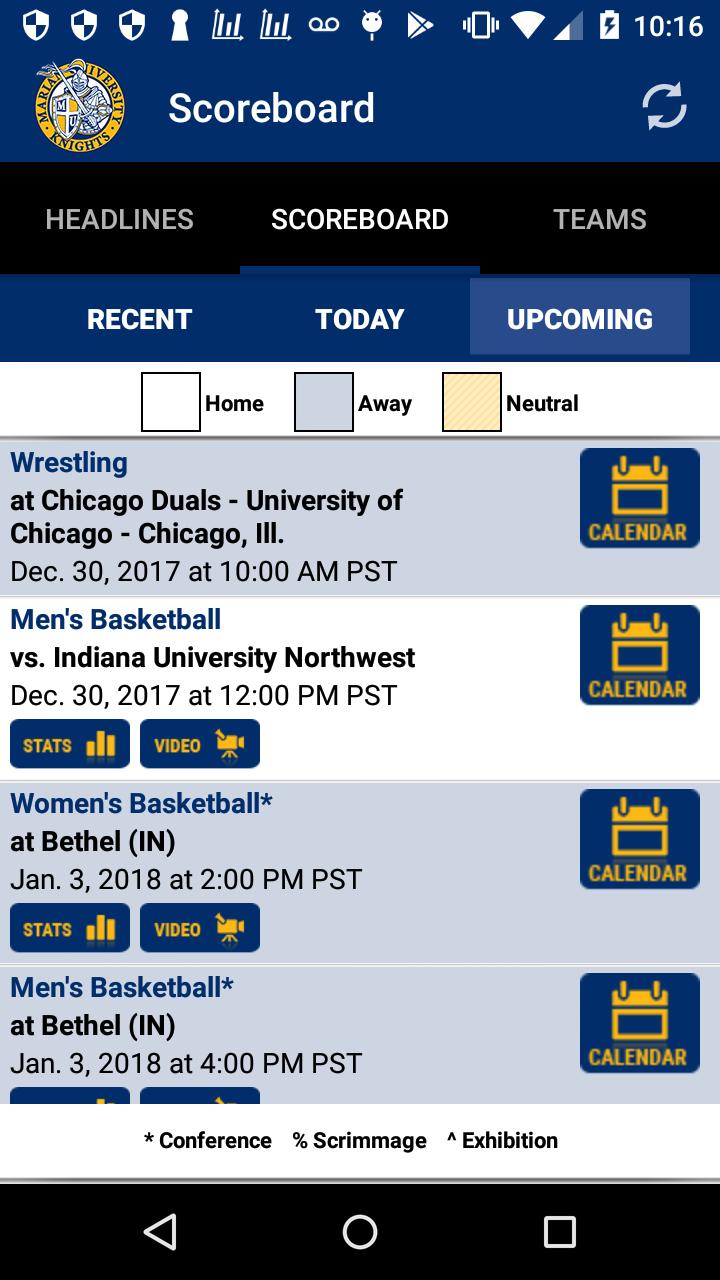 - 通过MU Knights Twitter Feed,Facebook帖子和Instagram照片从Marian University Athletics获取独家内容
