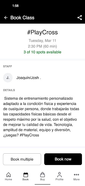 使用Play Gym应用程序计划和预订手机上的所有会议!您可以看到所有#PlayCross和#PlayBoxing时间表,以及俱乐部的促销和特殊活动。轻松,快速和有趣,您玩吗?