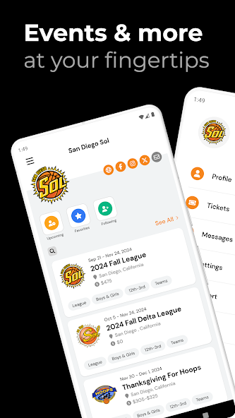 San Diego Sol应用程序是您的体育赛事的无所不包指南,精心制作,以满足团队和大学教练,媒体,球员,父母和球迷的需求。该平台旨在将活动的各个基本方面带到您的触点,可确保您保持联系和信息良好。