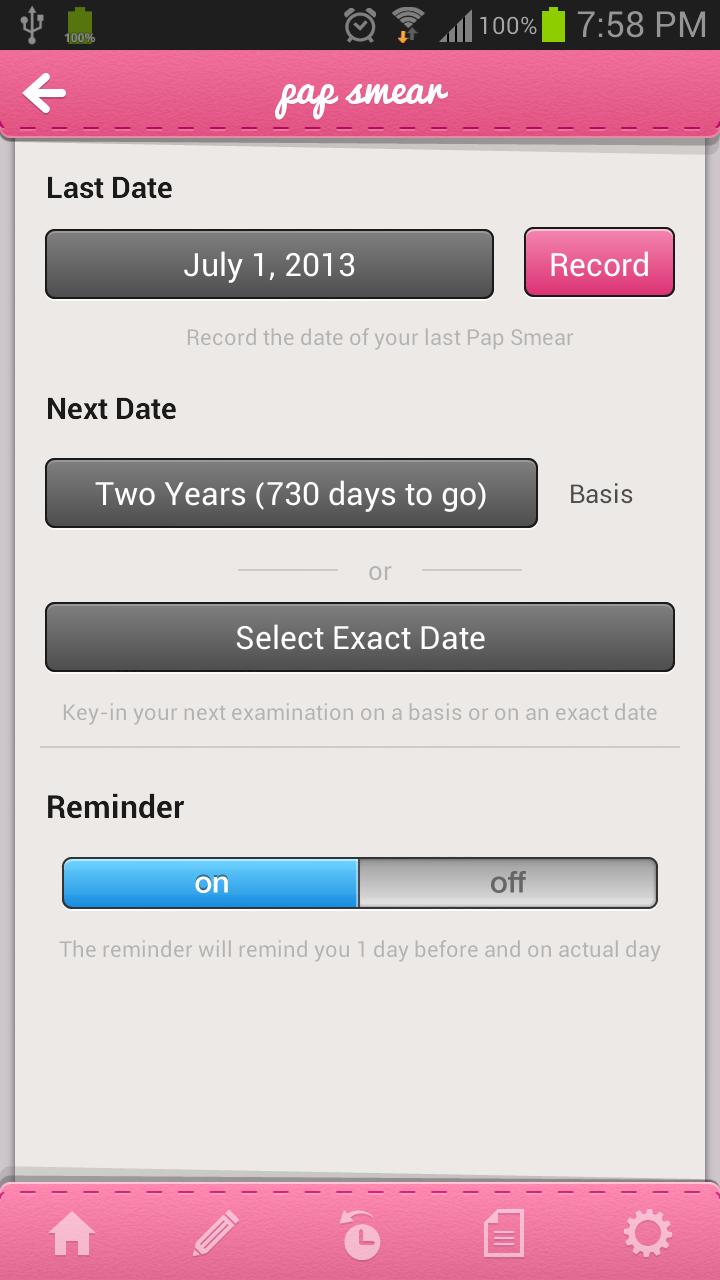 易于使用的应用程序,可帮助您记录和监视为女性提倡的常见健康筛查测试。